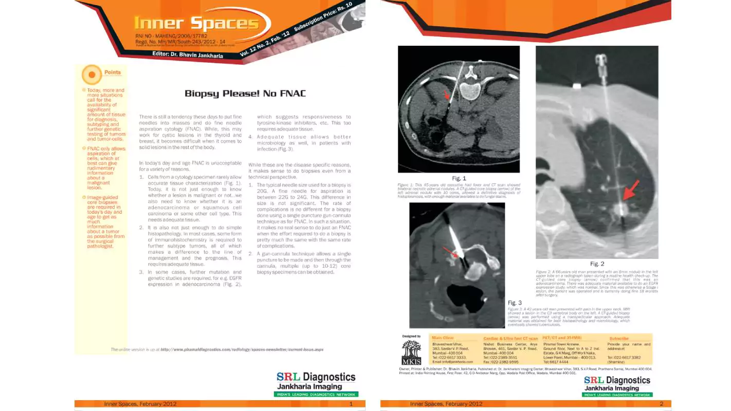 We have pioneered the use of routine core biopsies as against fine-needle aspirations in different parts of the body.